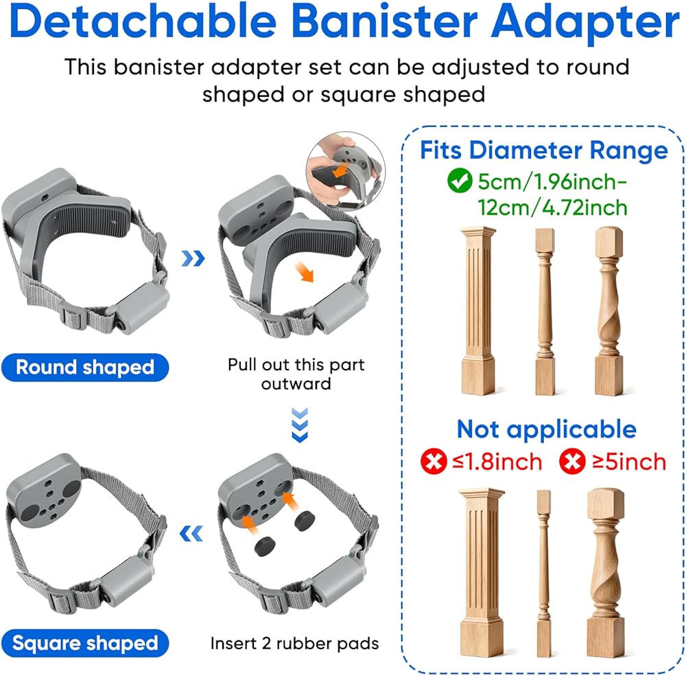 【Universal Banisters Fixed Tool】 Our product is flexible than other banister adapters which it can be applicable to those banisters are both having round with square designs,and irregular shapes.